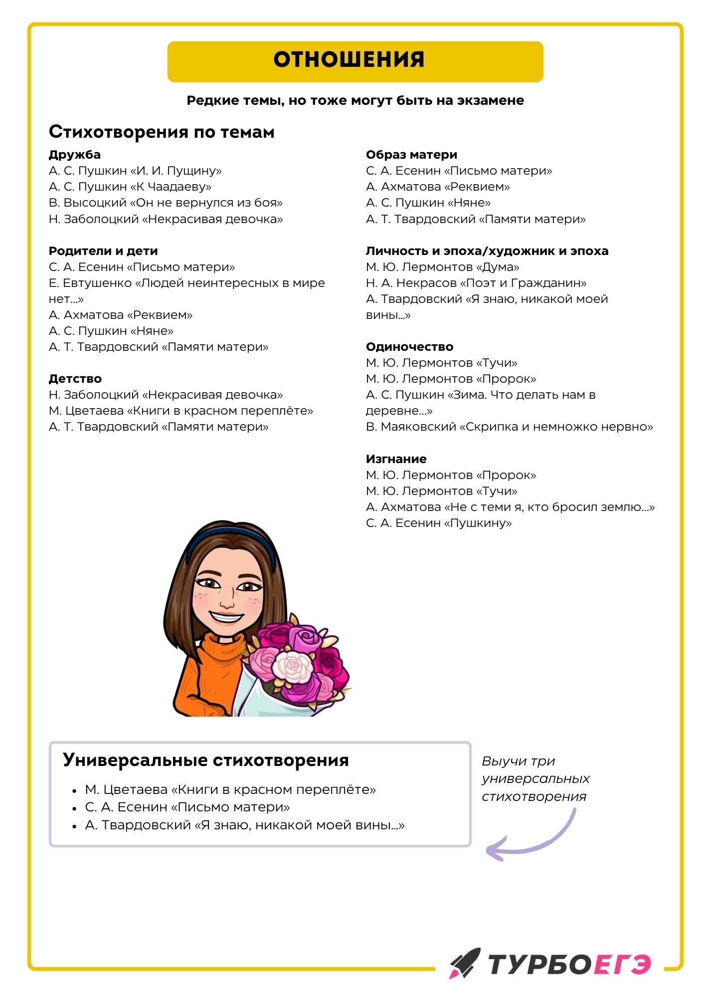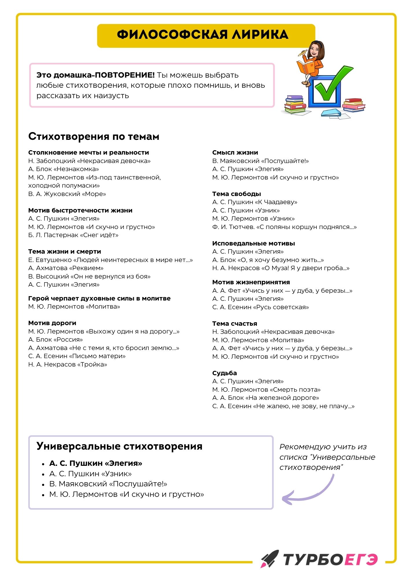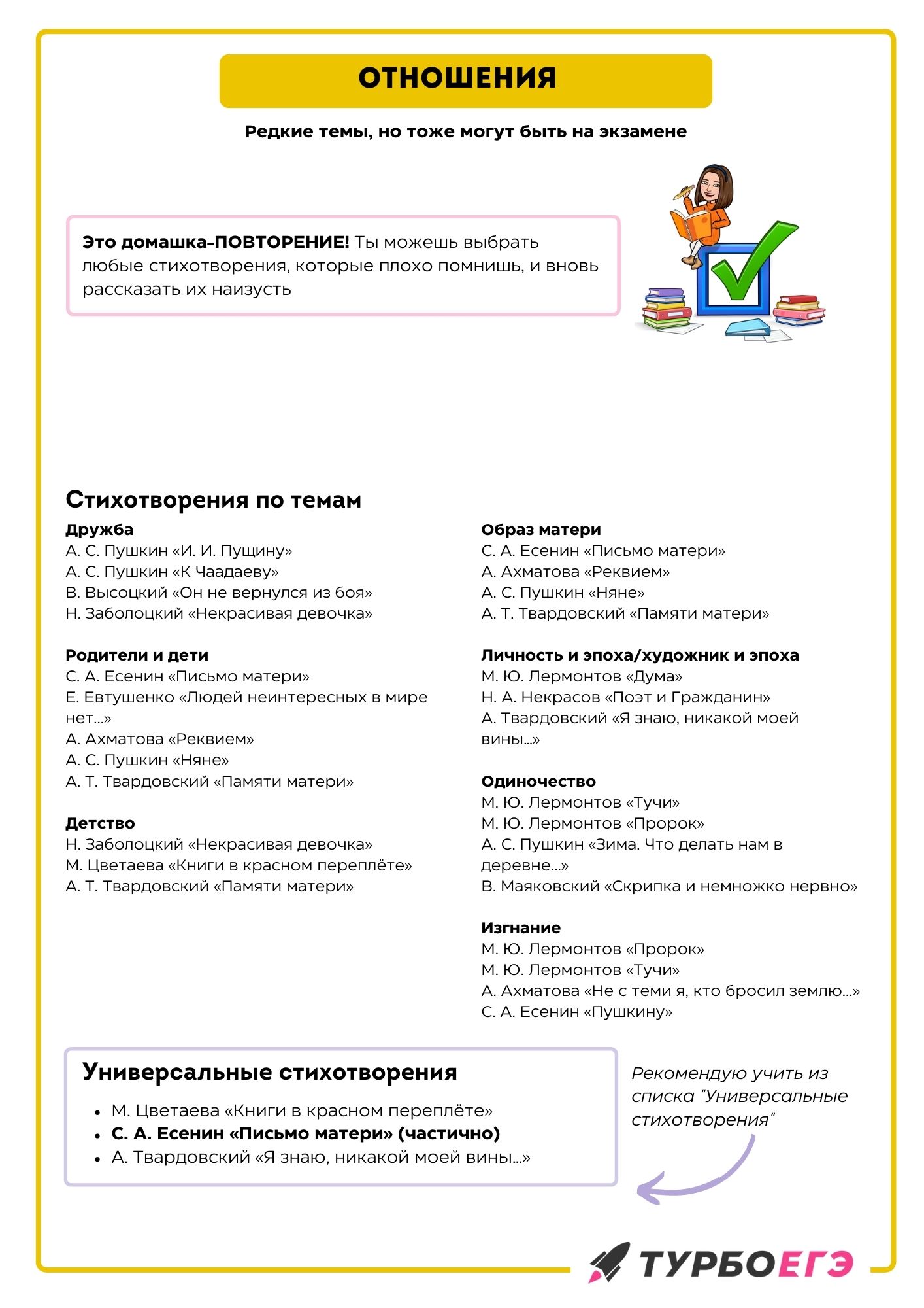 ЭТО ЗАЧЁТ-ПОВТОРЕНИЕ! Выбери любые стихотворения из блока "редкие темы" (2 и более), которые плохо помнишь, и вновь расскажи их наизусть. Видео отправь в лс группы (в вк можно записывать видео-кружочек). Преподаватель проверит твоё чтение наизусть и пришлёт тебе кодовое слово. Введи его в поле ответа.