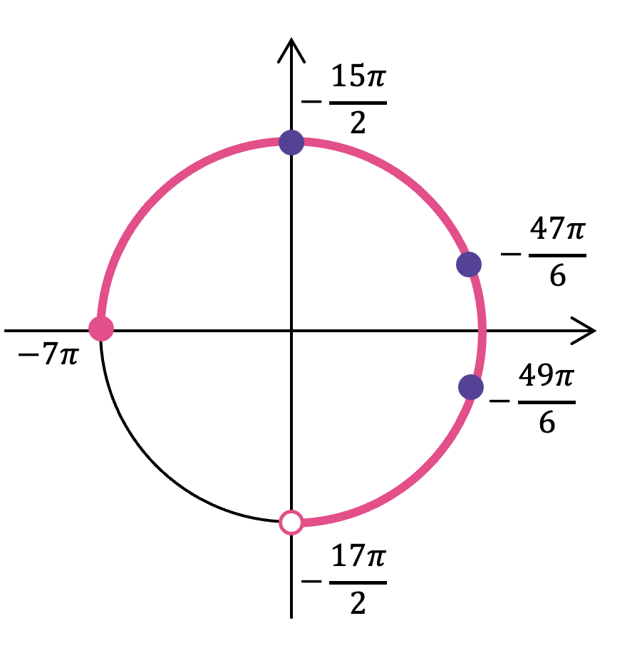 - Отметь все подходящие корни на окружности и обязательно подпиши их значения. Желательно отдельно распиши, как ты их получил.