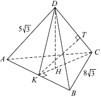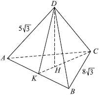 В равностороннем треугольнике $ABC$ высота $KC = AC·cos 30° = 8√3 ·{√3}/{2} = 12, KH = {1}/{3} KC = 4$. В треугольнике $ADK$ $AK = {1}/{2} AB = 4√3, KD = √{AD^2 - AK^2} = √{(5√3)^2 - (4√3)^2} = 3√3$.