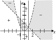 Изобразим множество решений первого неравенства на координатной плоскости $Oxa$, используя метод областей.