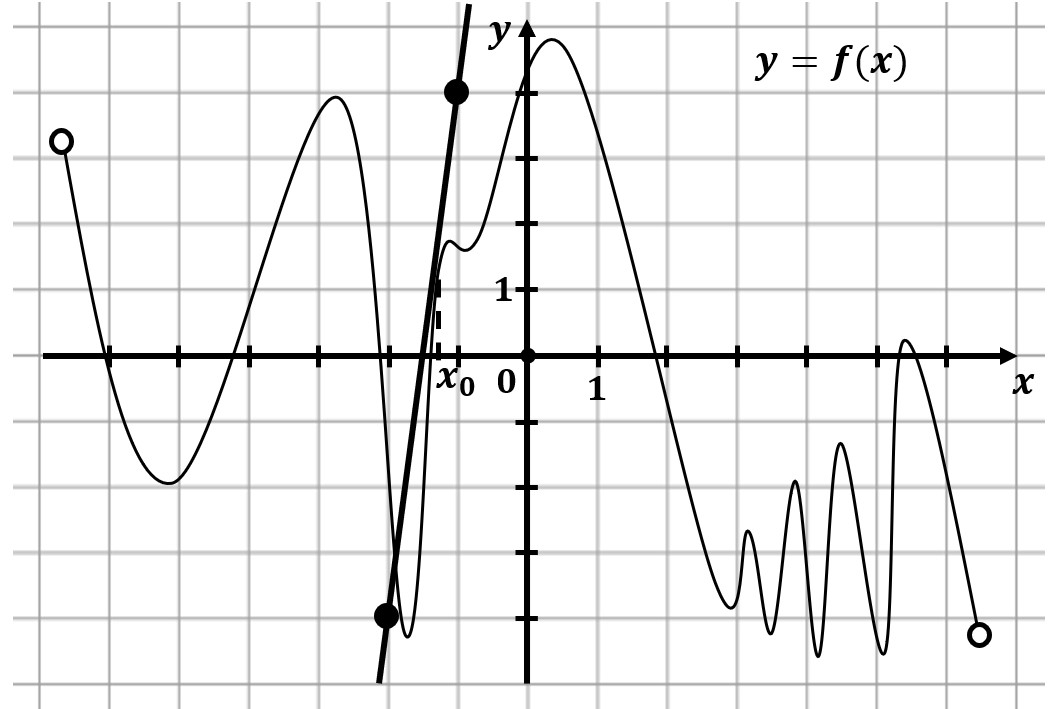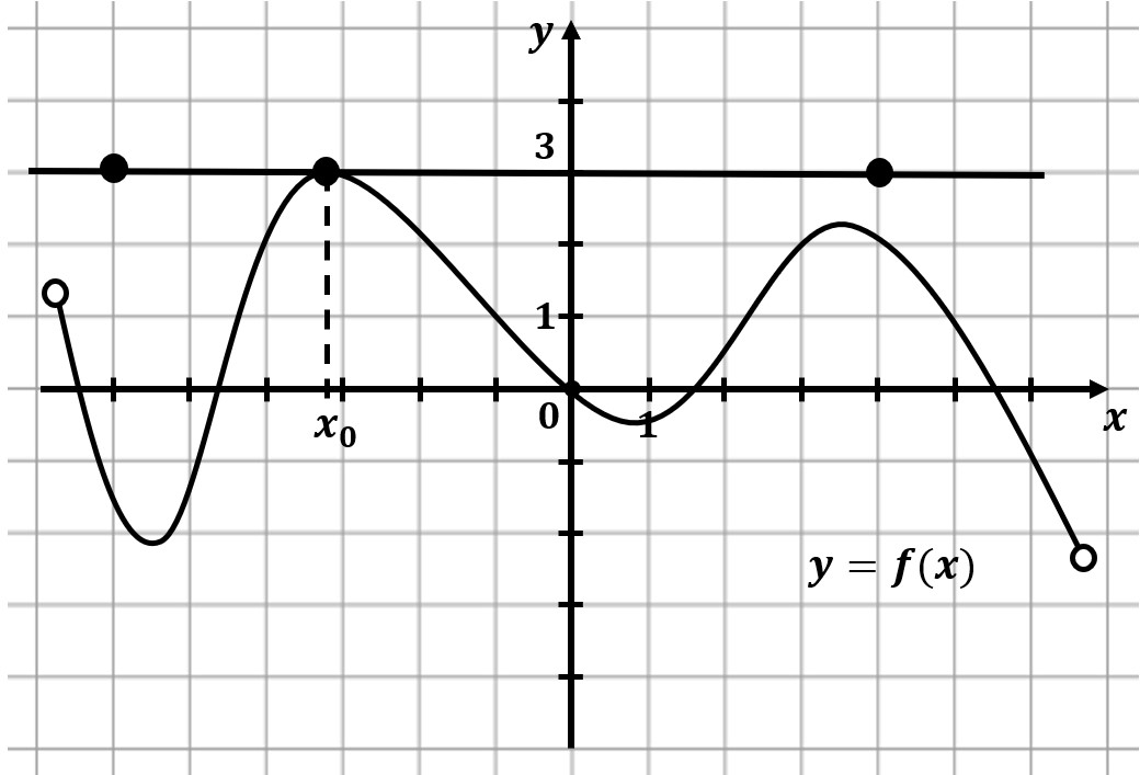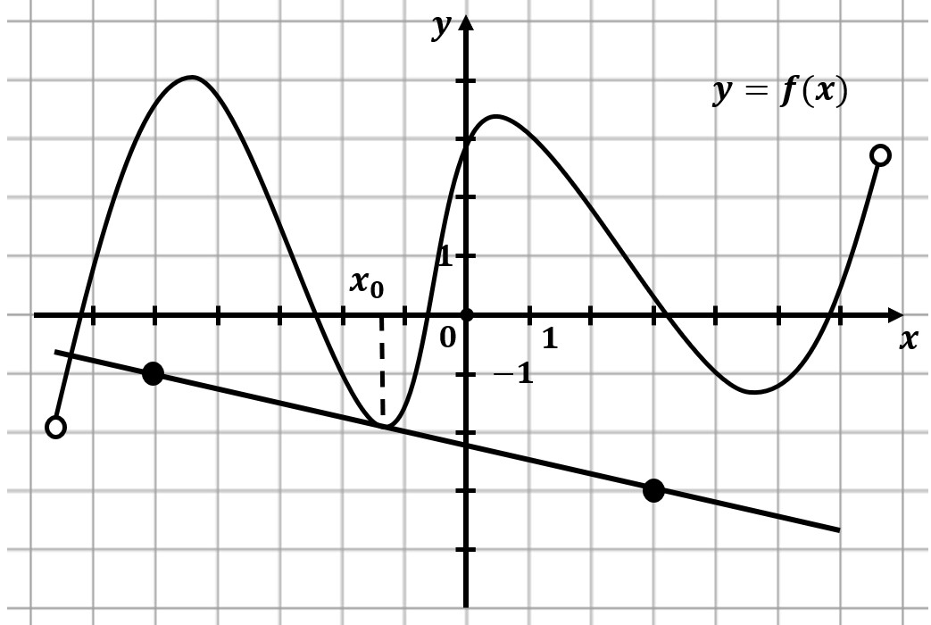 Угловой коэффициент касательной $y=-3$ равен нулю, следовательно, искомыми точками будут точки экстремума (см. рис. $$). Таких точек — девять.