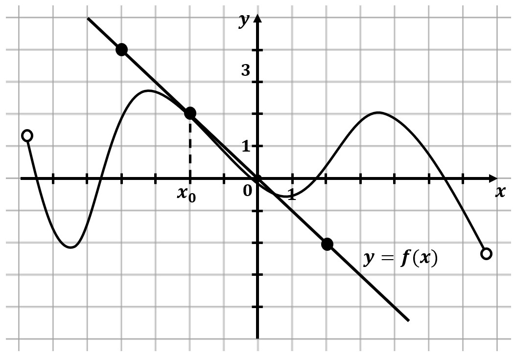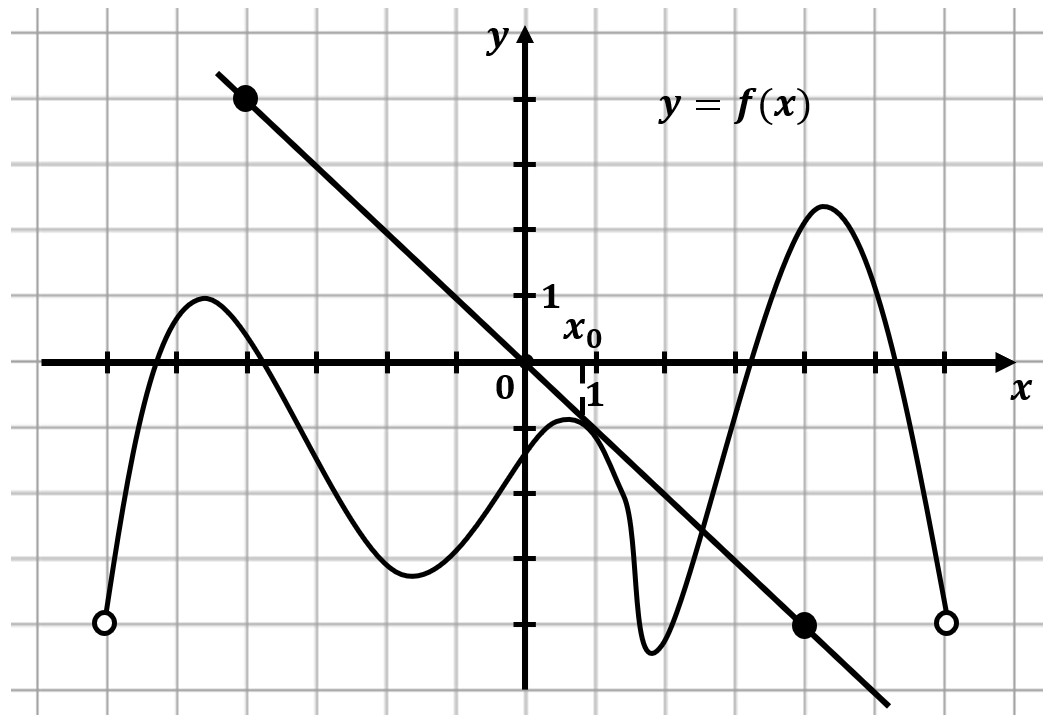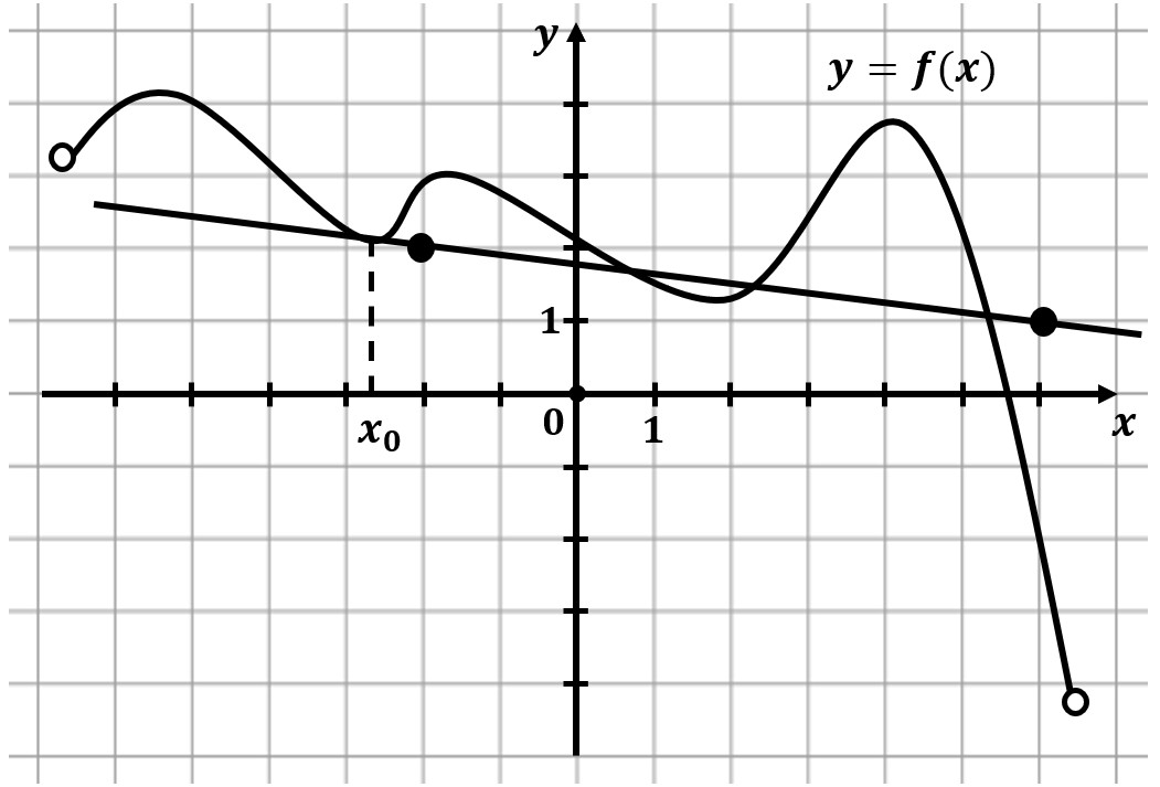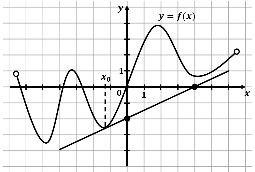 На рисунке изображены график функции $y=f(x)$ и касательная к нему в точке с абсциссой $x_0$. Найдите значение производной функции $f(x)$ в точке $x_0$.