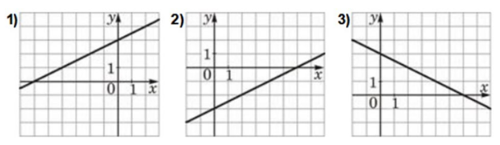 2) Угол наклона острый, значит, k>0. b<0, так как прямая пересекает ось Oy в отрицательной части. Вариант В.