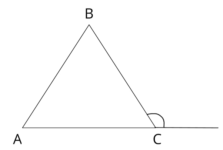 Видим, что внешний угол является смежным с внутренним углом C, сумма смежных углов 180°. Находим внешний угол: $180-142=38$
