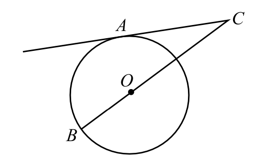 Найдите угол $ACO$, если его сторона $AC$ касается окружности с центром в точке $O$, а дуга $AB$, заключённая внутри этого угла, равна $150^°$ (см. рис.).