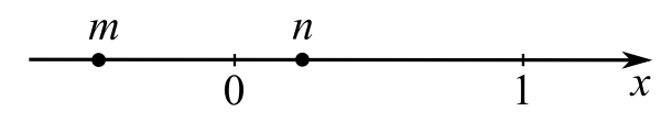 Числа $m$ и $n$ отмечены на координатной прямой. Расположите числа ${1}/{m}$, ${1}/{n}$, $1$ в порядке возрастания.