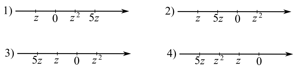 Известно, что z — целое отрицательное число. На каком из рисунков точки с координатами $0$, $z$, $z^2$, $5z$ расположены на координатной прямой в правильном порядке?