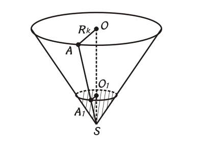 $R_k=AO=3A_1O_1=3R_1; V_{конуса}={1}/{3}πR_k^2·h_k={1}/{3}π·(3R_1)^2·3h_ж=$