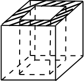 Поверхность оставшейся части куба состоит из боковой поверхности куба, площадь которой равна $4$, боковой поверхности призмы, площадь которой равна $1.6$, и двух равных фигур (см. заштрихованную фигуру на рисунке), площадь каждой из которых равна $1^2 - 0.4^2 = 0.84$. Таким образом, площадь поверхности оставшейся части куба равна $4 + 1.6 + 2 · 0.84 = 7.28$.