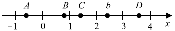 На прямой отмечены число b и точки A, B, C и D. Установите соответствие между указанными точками и числами в правом столбце, которые им соответствуют.
