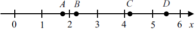 На числовой прямой: A ≈ 1.79, B ≈ 2.32, C ≈ 4.2, D ≈ 5.5