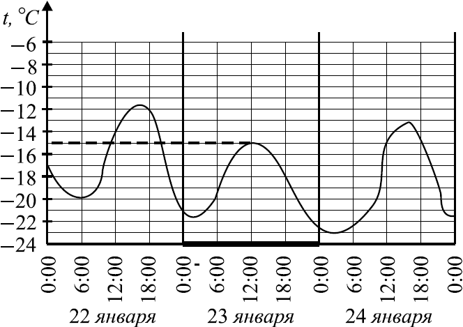 На рисунке показано изменение температуры воздуха на протяжении трёх суток. По горизонтали указывается дата и время суток, по вертикали — значение температуры в градусах Цельсия. Определите по рисунку наибольшую температуру воздуха 23 января. Ответ дайте в градусах Цельсия.