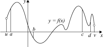 | А) $(u; a)$ Б) $(a; b)$ В) $(c; d)$ Г) $(d; v)$ | 1) во всех точках промежутка $f(x) < 0$ и $f'(x) > 0$ 2) во всех точках промежутка $f(x) < 0$ и $f'(x) < 0$ 3) во всех точках промежутка $f(x) > 0$ и $f'(x) > 0$ 4) во всех точках промежутка $f(x) > 0$ и $f'(x) < 0$ |
