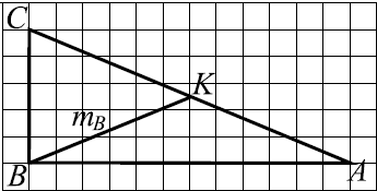 На клетчатой бумаге с размером клетки $1$ см $×$ $1$ см изображён треугольник $ABC$ (см. рис. ). Найдите длину его медианы, проведённой из вершины $B$ (в сантиметрах).
