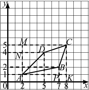 Найдите площадь четырёхугольника, вершины которого имеют координаты $(2;1)$, $(7;2)$, $(8;5)$, $(5;4)$ (см. рис. ).