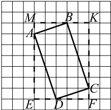 На клетчатой бумаге с размером клетки $√ {10}$ см $×$ $√ {10}$ см изображён четырёхугольник $ABCD$ (см. рис. ). Найдите его периметр.