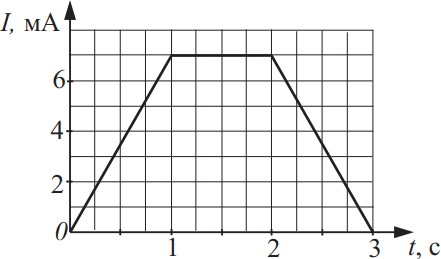 На рисунке приведён график зависимости силы тока от времени в электрической цепи, индуктивность которой 1 мГн. Определите модуль ЭДС самоиндукции в интервале времени от 10 до 15 с. Ответ выразить в (мкB).