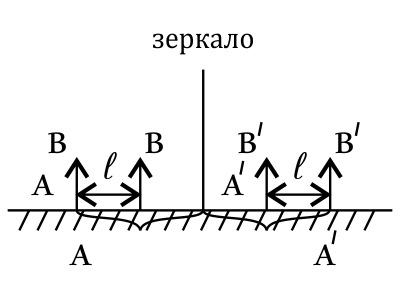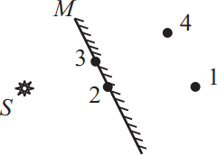 Из теории оптики о плоских зеркалах: В зеркале М изображением предмета S будет точка 4, лежащая на перпендикуляре, опущенном из S к M, по другую сторону от зеркала