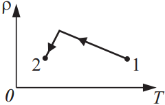 На ρT -диаграмме изображён процесс изменения состояния некоторого фиксированного количества идеального одноатомного газа (ρ — плотность газа). Объясните, как изменяется давление газа при переходе из состояния 1 в состояние 2. Ответ поясните, указав, какие явления и закономерности вы использовали.
