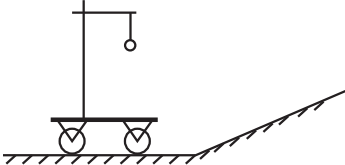 Легкоподвижная тележка, на которой укреплён маятник, движется равномерно. Тележка наезжает на уклон. Куда отклонится маятник?