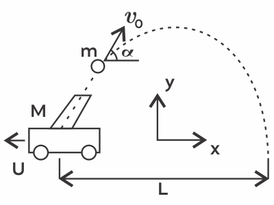Запишем ЗСИ: $Mu=mv_0cosα$, откуда $v_0={Mu}/{mcosα}$