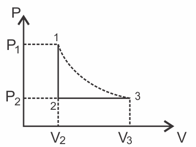 Два моля идеального одноатомного газа сначала охладили, а затем нагрели до первоначальной температуры 400 К, увеличив объём газа в три раза. Какое количество теплоты отдал газ на участке 1 – 2? Ответ в Дж (округлите до целых).