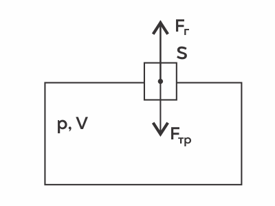 Второй закон Ньютона для пробки в момент выскакивания: ${F_{тр}}↖{→}={F_г}↖{→}$, где ${F_г}↖{→}$ - сила воздействия газа: $F_г=p_2·S_0$, $p_2$ - давление газа после передачи ему теплоты.