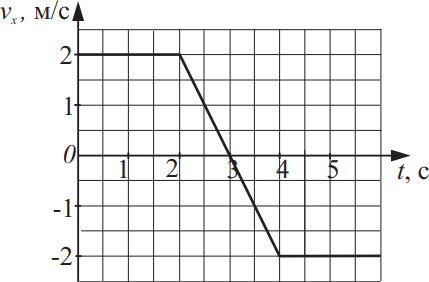 Тело массой 15 кг движется вдоль оси Ox в инерциальной системе отсчёта. График зависимости проекции скорости vx этого тела на ось Ox от времени представлен на рисунке. Из приведённого ниже списка выберите два верных утверждения на основании анализа представленного графика и укажите их номера.