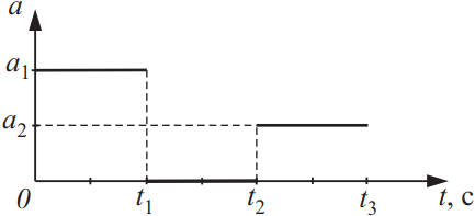 Тело начинает двигаться из состояния покоя. На рисунке изображён график зависимости ускорения тела от времени движения. Установите соответствие между физическими величинами и графиками, по которым их можно рассчитать.