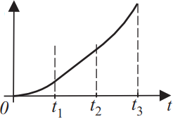Б) от 0 до $t_1$ график представляет собой ветвь параболы, т.е зависимость квадратная, от $t_1$ до $t_2$ график представляет собой линию, т.е. зависимость линейная и в промежутке времени от $t_2$ до $t_3$ график снова представляет собой ветвь параболы, но более крутую, т.е. зависимость тоже квадратная. Квадратные зависимости имеют кинетическая энергия $E_к={mυ^2}/{2}$ и путь $S={at^2}/{2}$, то в промежутке времени более крутую ветвь параболы даст наш путь, поэтому график Б) - график пути, пройденного телом.