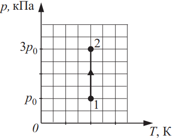 На pT -диаграмме представлен процесс изменения состояния идеального одноатомного газа. Масса газа не меняется. Какую работу совершают внешние силы при переходе газа из состояния 1 в состояние 2, если газ отдаёт 35 кДж теплоты? Ответ выразите в (кДж).
