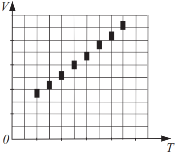 При проведении эксперимента по изобарному нагреванию разреженного газа была получена следующая зависимость объёма газа V от его температуры T . Из приведённого ниже списка выберите два утверждения, соответствующих результатам этого эксперимента.