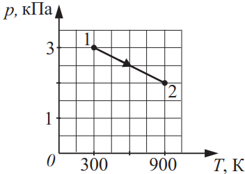 При переходе идеального газа из состояния 1 в состояние 2 получили линейную зависимость давления газа от температуры. Масса газа в процессе остаётся постоянной. Из приведённого ниже списка выберите все верные утверждения, характеризующих процесс 1–2.